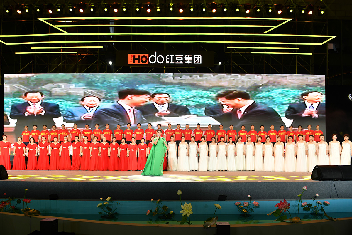 隨著音樂緩緩響起,扮演成“牛郎”和“織女”的男女舞蹈演員,在臺上翩然起舞,演繹著神話傳說中的“愛情故事”,晚會就在這支歌舞《七夕,我們的節(jié)日》中拉開了序幕。據(jù)悉,為打響企業(yè)文化優(yōu)質品牌,弘揚積極向上的紅豆勵志精神和拼搏精神,紅豆集團特別邀請了全國及全省內外有非凡影響力和創(chuàng)作能力的詞作家、曲作家、音樂家來紅豆采風,精心創(chuàng)作了一組《紅豆組歌》。晚會上,觀眾們首次欣賞到了《紅豆組歌》的所有原創(chuàng)歌曲。