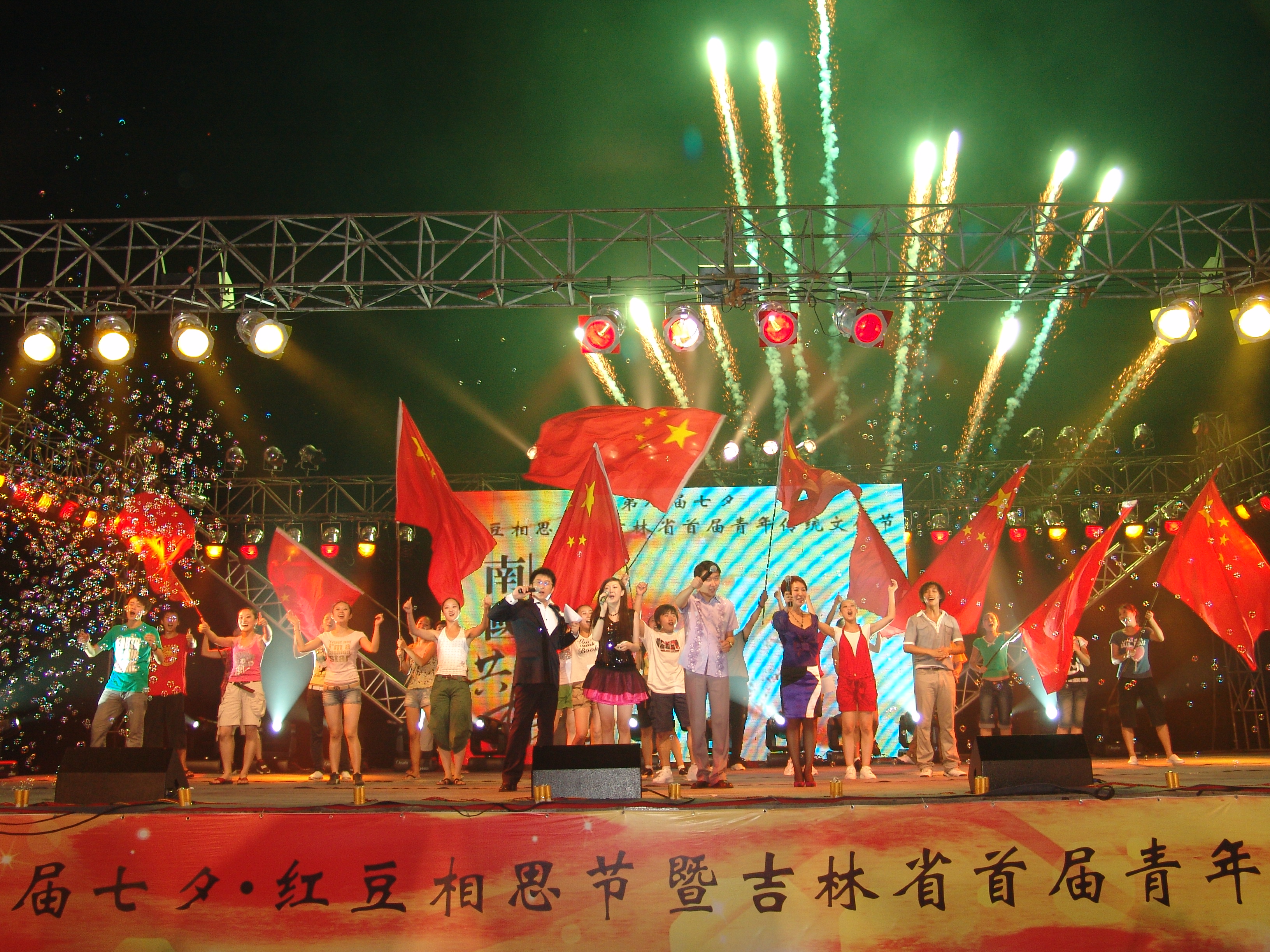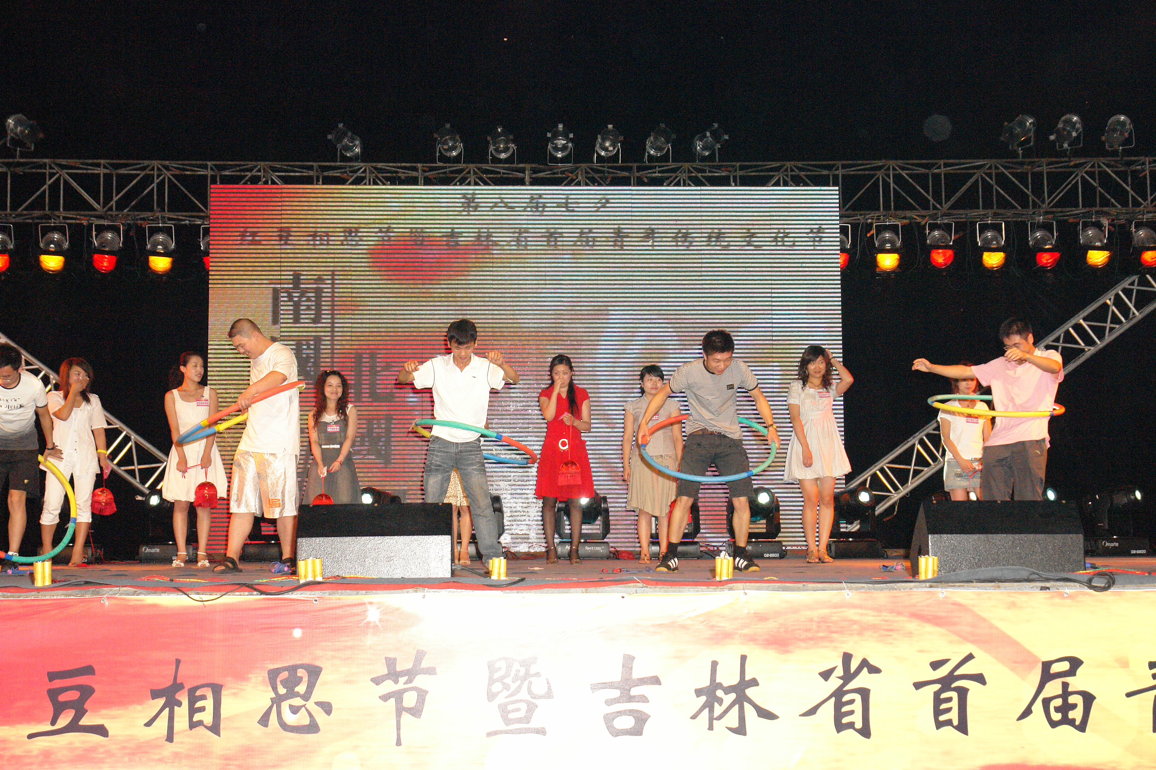 傳統(tǒng)七夕節(jié)(8月7日)這一天晚上,長(zhǎng)春市文化廣場(chǎng)歌聲陣陣,音樂滿天,到處可見心形的氣球、鮮紅的玫瑰,一盞盞心愿燈緩緩升起,這里正在舉辦第八屆七夕·紅豆情人節(jié)暨吉林首屆青年傳統(tǒng)文化節(jié)。首推七夕·紅豆情人節(jié)的周耀庭在這次活動(dòng)中高興地說“紅豆集團(tuán)原本計(jì)劃要用5個(gè)5年的時(shí)間推廣七夕節(jié),但現(xiàn)在看來這個(gè)時(shí)間要提前了?!?這次活動(dòng)由共青團(tuán)吉林省委、吉林省青年聯(lián)合會(huì)、紅豆集團(tuán)、吉林電視臺(tái)、城市晚報(bào)社、長(zhǎng)春交通之聲共同舉辦,共青團(tuán)吉林省委書記謝忠?guī)r,九屆、十屆全國人大代表、紅豆集團(tuán)董事局主席周耀庭等領(lǐng)導(dǎo)出席了這次活動(dòng)。文化廣場(chǎng)上人山人海,有20000多名長(zhǎng)春市民積極自愿參加這次活動(dòng),快樂的度過了美麗的七夕。