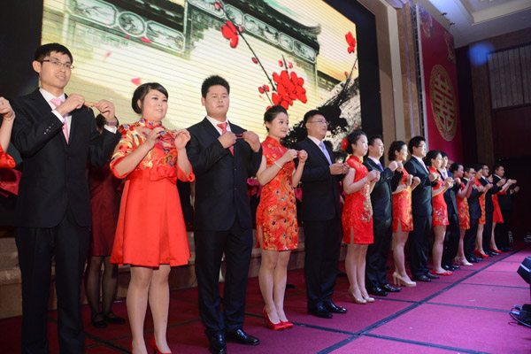 在紅豆,有著無數(shù)個這樣的故事等待我們挖掘。這些紅豆人因為紅豆情文化而扎根企業(yè),從而也吸引更多的人選擇在紅豆扎根。紅豆是有形的情,在紅豆,每個員工都會感受到家庭溫暖。此次紅豆樹下的婚禮,紅豆為紅豆員工打造美輪美奐的婚禮,精心安排各種獨具紅豆特色的環(huán)節(jié)。鵲橋相會、恩愛宣誓、紅豆樹下鎖同心、新人共放荷花燈,紅豆情緣等等系列戶外儀式,演繹著新人相識相戀相愛的浪漫故事。紅豆集團(tuán)還為新人們送上紅豆緣定制首飾、定制旗袍、紅豆形象男裝等具有濃厚中國風(fēng)的新婚賀禮,共邀新人的親朋好友參加這場最浪漫的新中式集體婚禮,以紅豆之名見證最美的愛情。