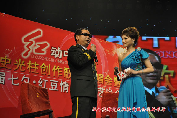 “江中有你的小溪,江中有我的河,江中有你人生的一段跋涉,在那激情演繹的歲月,你像陽(yáng)光走進(jìn)天地,走進(jìn)我生活……”歌曲《江戀》的旋律剛一響起,整個(gè)劇場(chǎng)內(nèi)爆發(fā)出雷鳴般的掌聲?!斑@首歌是史光柱為歌頌愛(ài)情,為我們紅豆集團(tuán)寫(xiě)的歌?!崩钕壬贿吂恼?,一邊說(shuō)道。如果沒(méi)有1984年的那場(chǎng)戰(zhàn)爭(zhēng),這個(gè)世界將會(huì)少一位英雄;如果沒(méi)有那場(chǎng)戰(zhàn)爭(zhēng),這個(gè)世界就會(huì)多一雙明亮的眼睛。史光柱,這個(gè)響亮的名字,在上個(gè)世紀(jì)八十年代感動(dòng)和影響了整整一代人。戰(zhàn)傷后,他從雙目失明的陰影中走出,拿起筆桿,在文藝的陣地繼續(xù)攻關(guān)拔礙、沖鋒陷陣,譜寫(xiě)了一首首紅色經(jīng)典和一個(gè)個(gè)史光柱傳奇。據(jù)悉,當(dāng)天整場(chǎng)晚會(huì)共16首歌曲全部是由史光柱創(chuàng)作而成,其中《江戀》、《紅豆》和《青春木棉》三首歌曲是他專門(mén)為紅豆集團(tuán)創(chuàng)作的?!笆氛@么多年來(lái),究竟是什么力量讓您始終飽含創(chuàng)作的激情?”晚會(huì)上,主持人的問(wèn)題代表了所有人心中的疑問(wèn)。“祖國(guó)、大愛(ài)、崇高的理想一直都在我心中,是它們激勵(lì)著我克服了重重困難,我想說(shuō)的是,崇高讓我高尚,崇高讓我內(nèi)心充滿陽(yáng)光?!笔饭庵幕卮鹨矛F(xiàn)場(chǎng)觀眾連連贊嘆,將晚會(huì)推向了一個(gè)小高潮。男生獨(dú)唱、女生獨(dú)唱、男女對(duì)唱、歌伴舞,一首首紅色經(jīng)典不僅激發(fā)起觀眾們對(duì)于愛(ài)情的美好聯(lián)想,而且引起了他們對(duì)故鄉(xiāng)、祖國(guó)的思念。