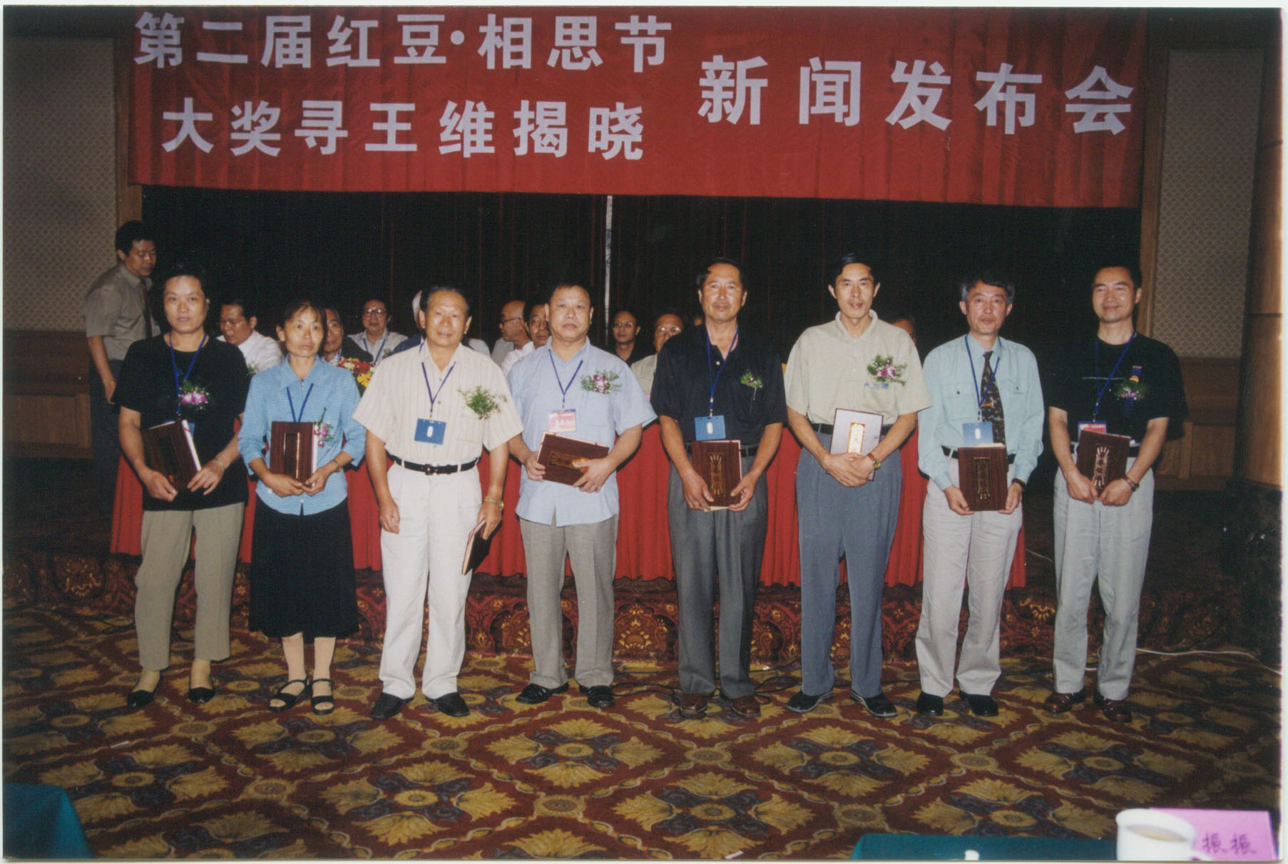7月15日,“七夕紅豆·相思節(jié)詩詞大賽”歷經(jīng)三個(gè)半月截稿,據(jù)統(tǒng)計(jì)此次大賽共收到美、英、日、法、加拿大、新西蘭、泰國等十幾個(gè)國家和兩岸三地參賽稿件108000多篇,參賽者達(dá)到了31000多人。7月24日,臺灣著名詩人余光中欣然作《紅豆》詩一首,并電傳到紅豆集團(tuán)。7月25日,大賽組委會把進(jìn)入復(fù)評的隱名稿件送往北京,由大賽評委會進(jìn)行復(fù)評、終評。7月30日,大賽評委會經(jīng)過反復(fù)評審、打分后,評出所有“七夕紅豆·相思節(jié)詩詞大賽”獲獎(jiǎng)作品。 8月14日,“七夕紅豆·相思節(jié)詩詞大賽”(20萬大獎(jiǎng)尋當(dāng)代王維)揭曉新聞發(fā)布會在無錫錦江大酒店舉行,來自北京的詩人劉征以一首古風(fēng)《紅豆曲》摘取了桂冠。紅豆集團(tuán)董事局主席周耀庭、著名詩人賀敬之、孫軼青、全國政協(xié)委員顧蔚慶等參加了這次發(fā)布會,并給獲獎(jiǎng)?wù)哳C發(fā)了獲獎(jiǎng)證書與獎(jiǎng)金。
