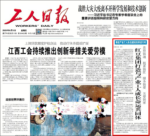 作為唯一入選全國產(chǎn)改項(xiàng)目試點(diǎn)的民企,江蘇紅豆集團(tuán)積極探索在非公企業(yè)開展黨建工作的方式方法,出臺《黨建帶工建推進(jìn)產(chǎn)業(yè)工人隊(duì)伍建設(shè)改革試點(diǎn)工作方案》,全面實(shí)施“四鑄四有”工程,著力改革創(chuàng)新紡織行業(yè)產(chǎn)業(yè)工人隊(duì)伍建設(shè)體制機(jī)制、方式方法,為集團(tuán)產(chǎn)業(yè)強(qiáng)企提供動力和保障,為全國產(chǎn)業(yè)工人隊(duì)伍建設(shè)改革探索“紅豆樣本”。