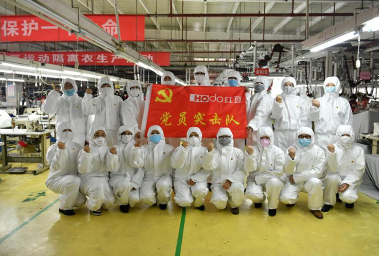 另一方面,項(xiàng)目組連夜研究項(xiàng)目情況,并火速成立隔離衣項(xiàng)目指揮部,由黨員干部組成隔離衣項(xiàng)目突擊隊(duì),優(yōu)秀共產(chǎn)黨員、紅豆運(yùn)動(dòng)裝公司黨支部書記、總經(jīng)理高品亞擔(dān)任隔離衣項(xiàng)目負(fù)責(zé)人。