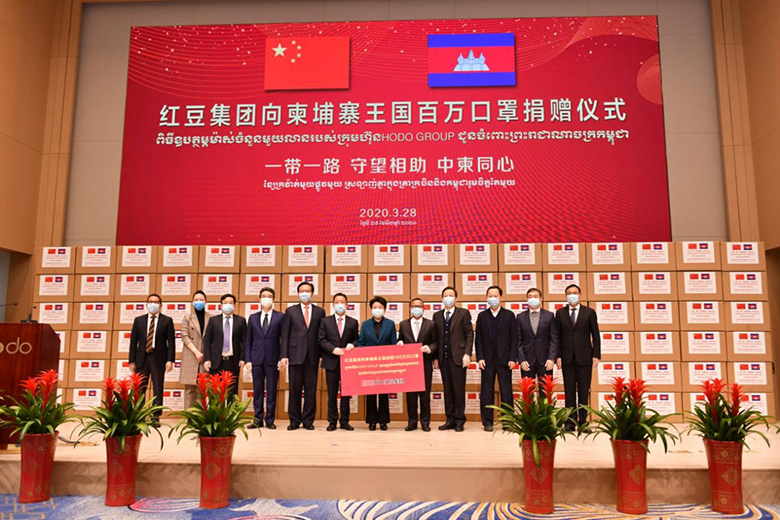 隨著疫情在全球蔓延,我第一時(shí)間安排人員向韓國(guó)、日本、加拿大、波蘭等海外客戶郵寄口罩,在市委組織部的牽頭下,紅豆還給美、日、韓海外學(xué)子捐贈(zèng)防護(hù)口罩。我特別關(guān)注柬埔寨的疫情,因?yàn)槟抢镉形覀兇蛟斓奈鞴烁劢?jīng)濟(jì)特區(qū)。得知他們非常缺口罩的時(shí)候,我立馬協(xié)調(diào)生產(chǎn),加班加點(diǎn)趕制,向柬埔寨紅十字會(huì)捐贈(zèng)了一百萬(wàn)只口罩。柬埔寨紅十字會(huì)主席、洪森首相夫人文拉尼親王特別來(lái)信感謝,稱贊“守望相助,中柬同心”。