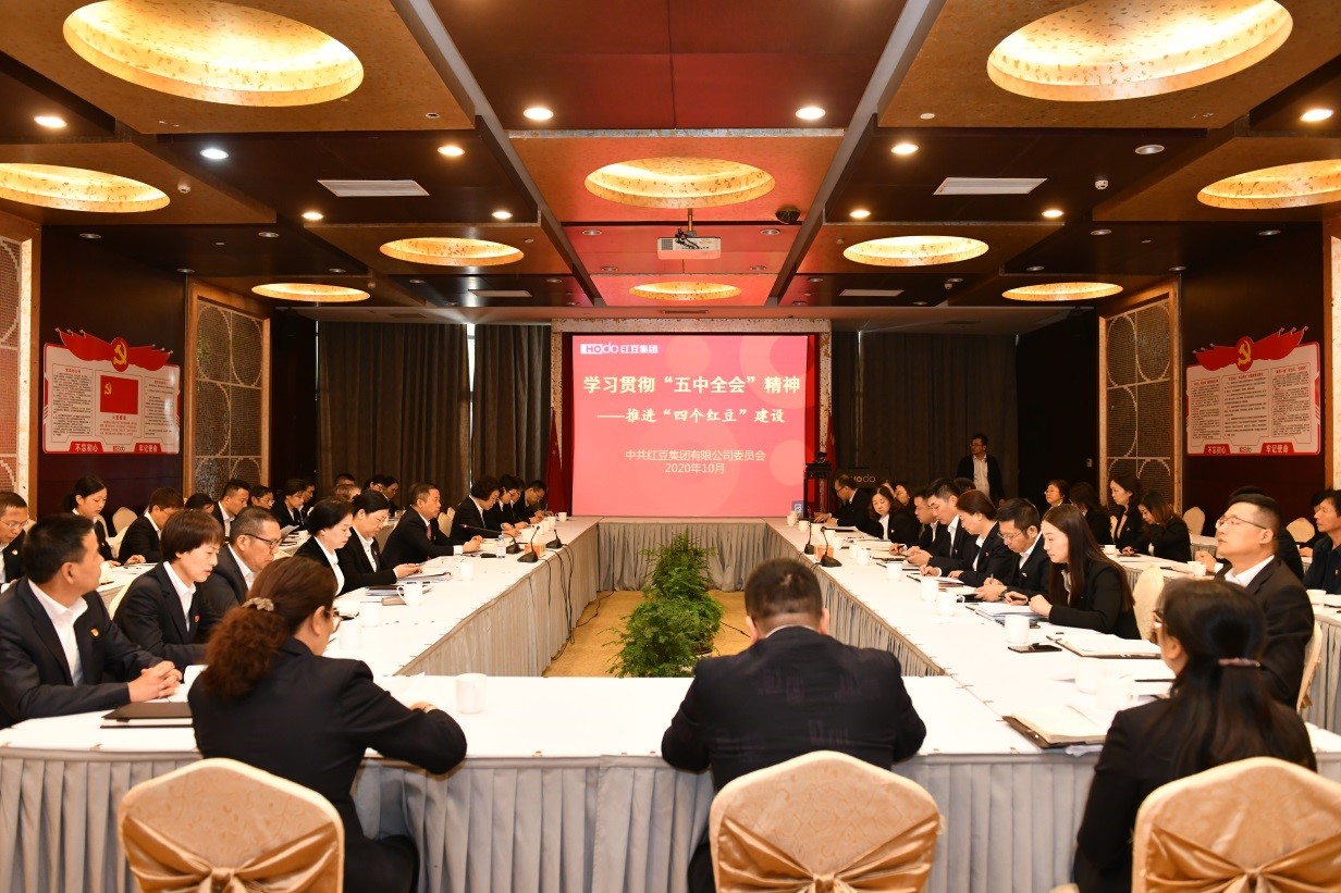 10月31日星期六上午9點,紅豆集團黨委在紅豆黨建館召開學習貫徹黨的十九屆五中全會精神,推進“四個紅豆”建設專題會。紅豆集團黨委書記、董事局主席兼CEO周海江,集團黨委委員以及各下屬黨委(總支)書記、黨務干部等參會。